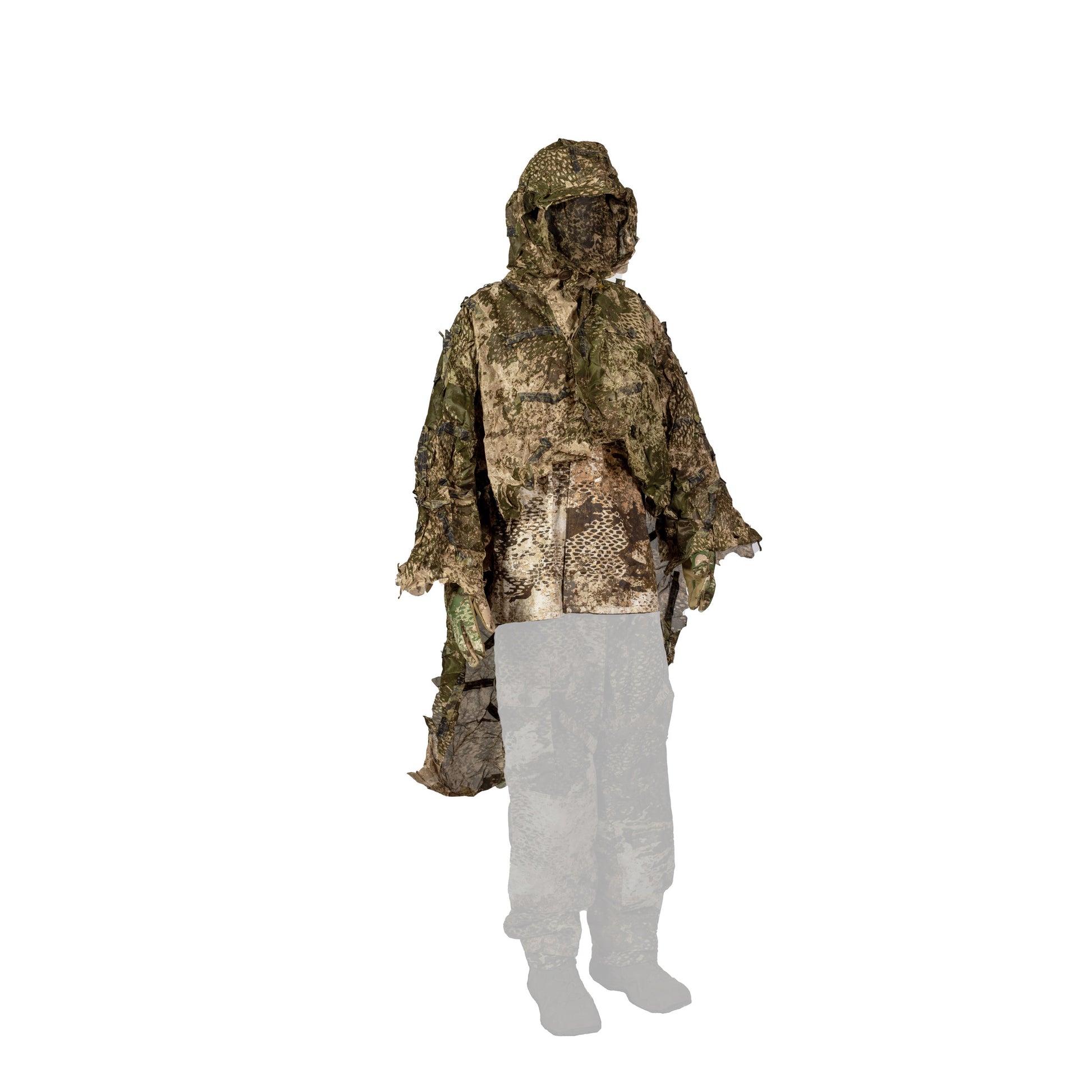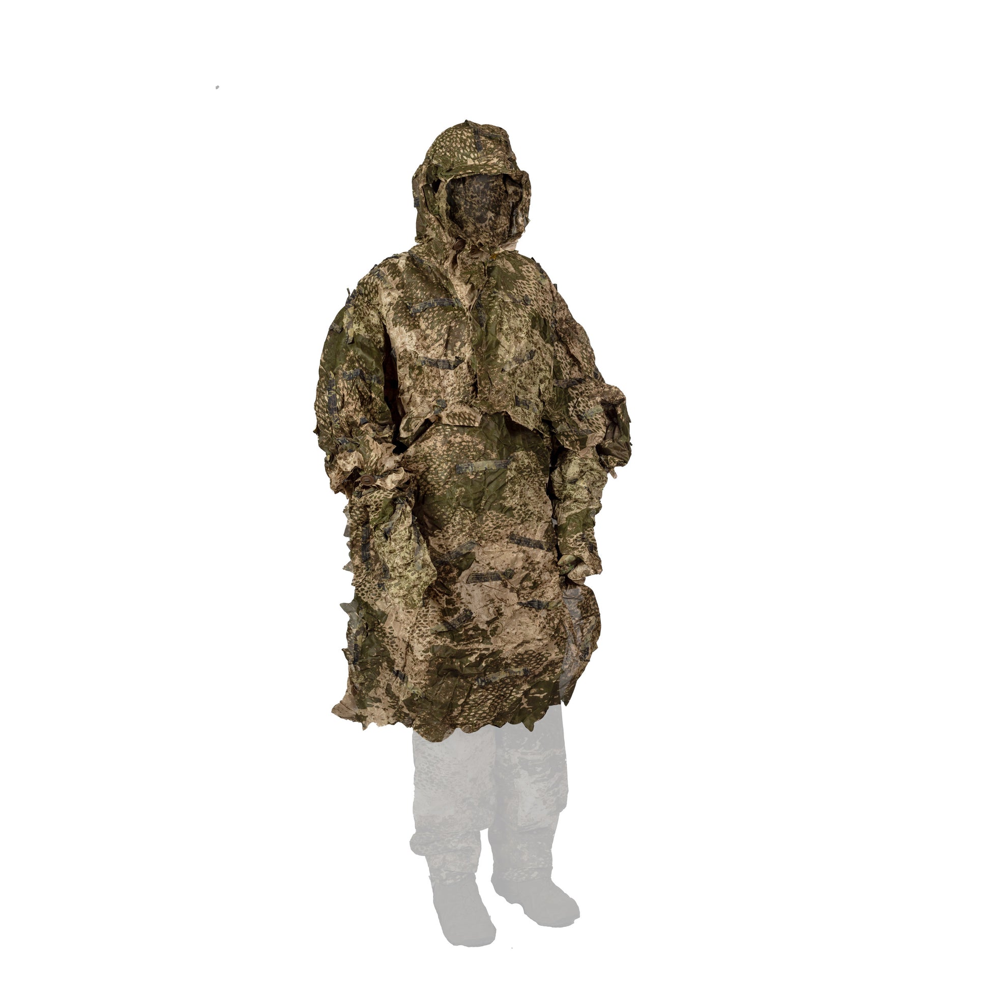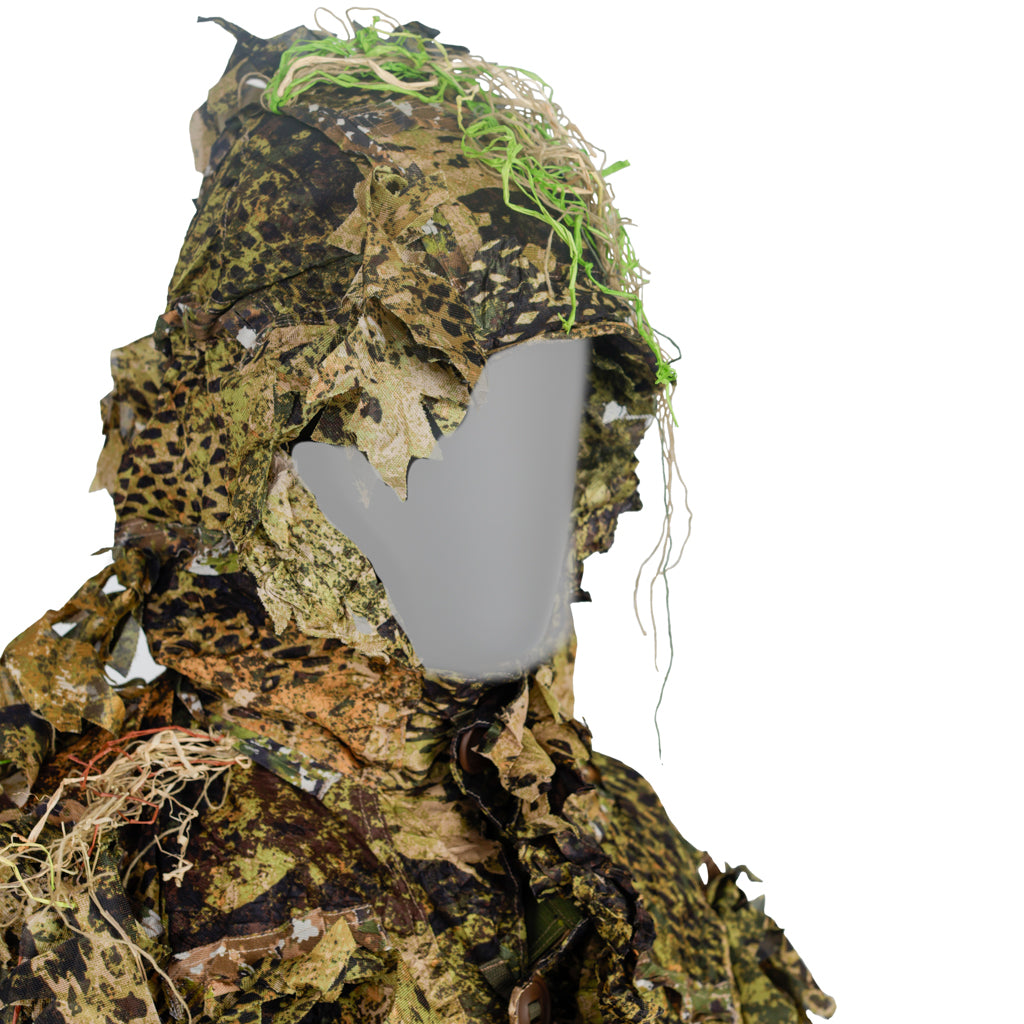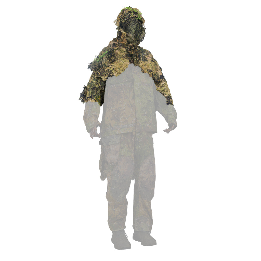 Scope of delivery: Ghillie with hood and face net, detachable front bib, two detachable gauntlets