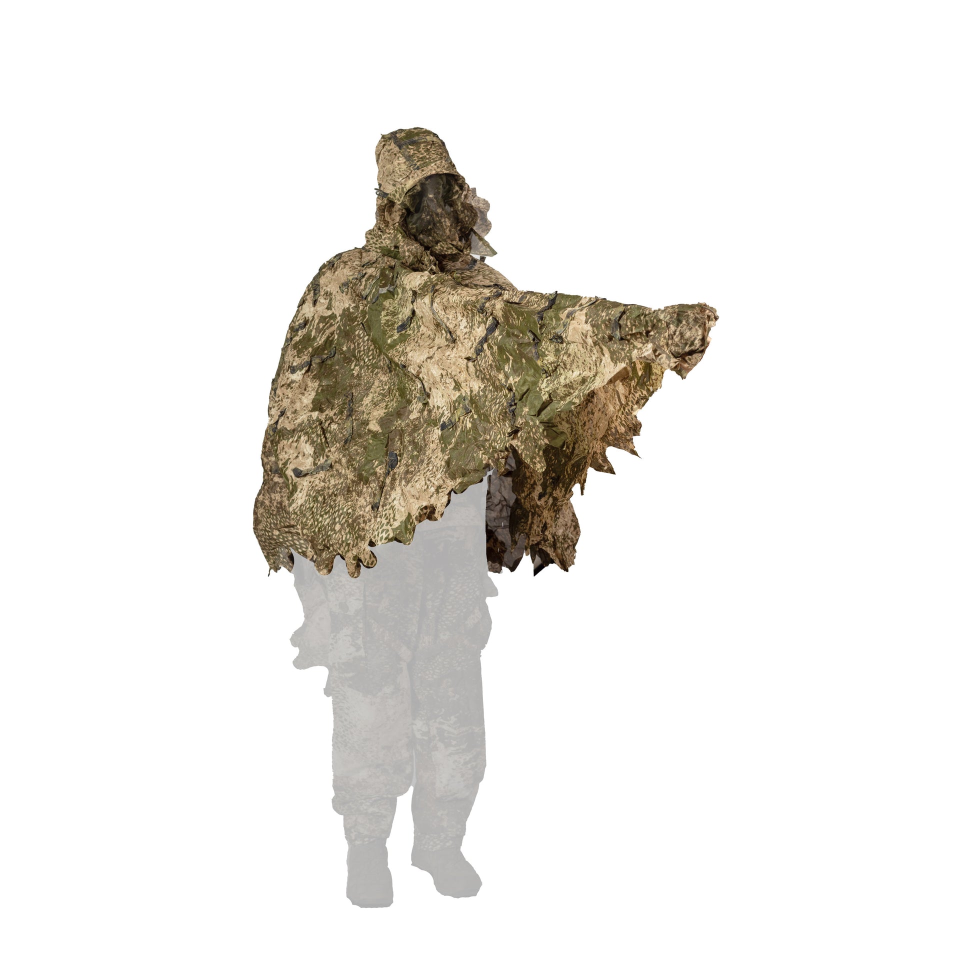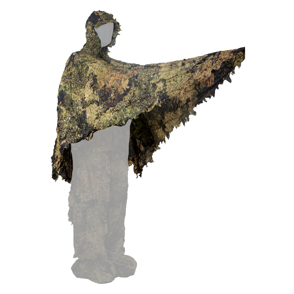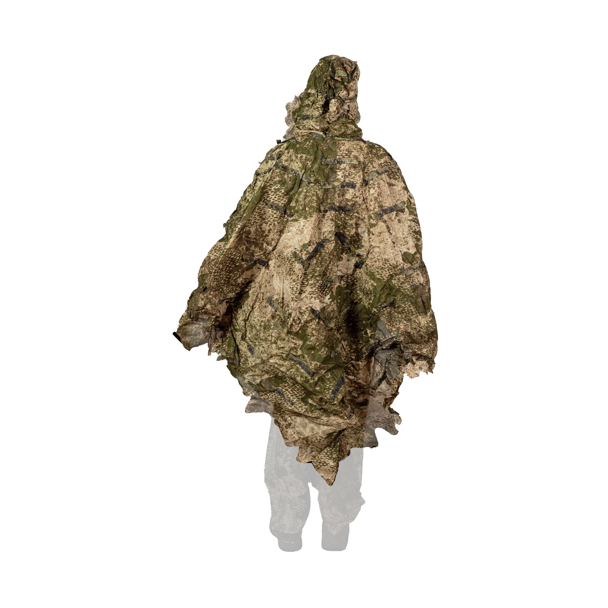 >> Use as sniper camouflage including weapon: side buttons allow the shooter including the long gun to be camouflaged when lying down. For this purpose, the poncho has a loop at the front end and an additional button placket in the centre front for optronic use.