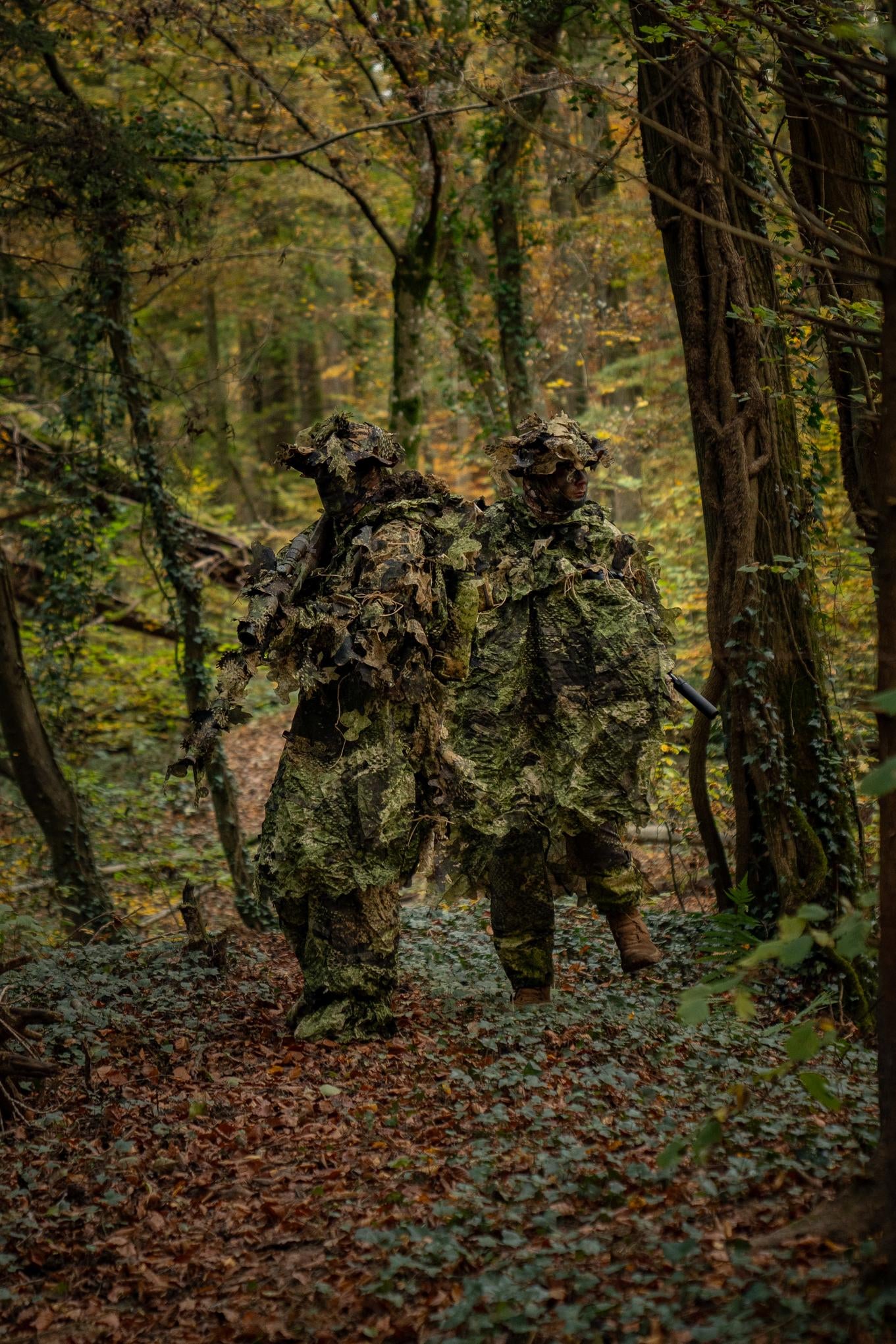 Die Blätter verleihen bekleideten Personen und Ausrüstung eine Dreidimensionalität und steigert somit die Tarnwirkung.