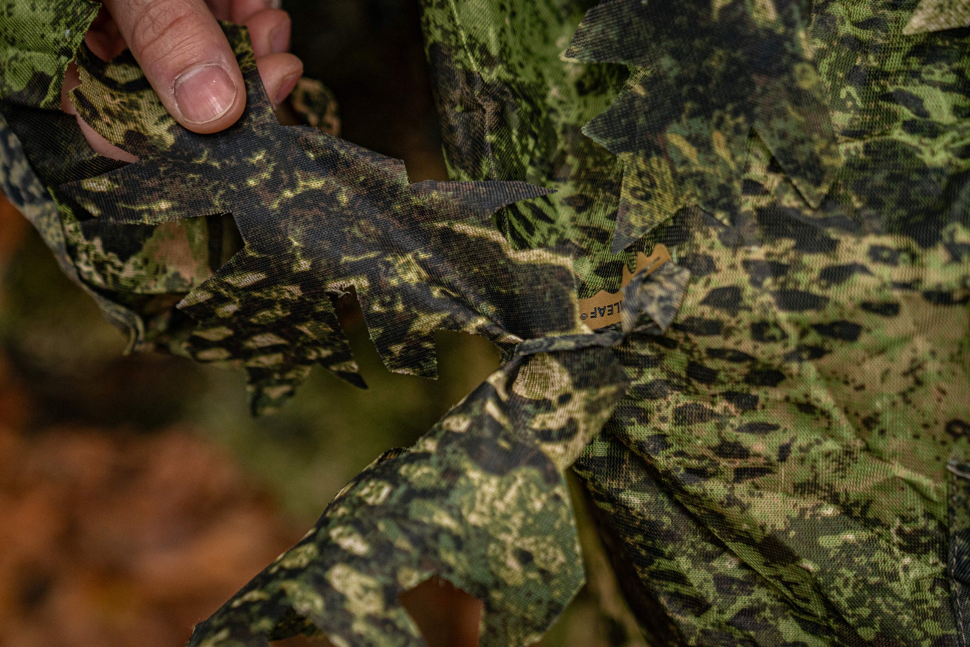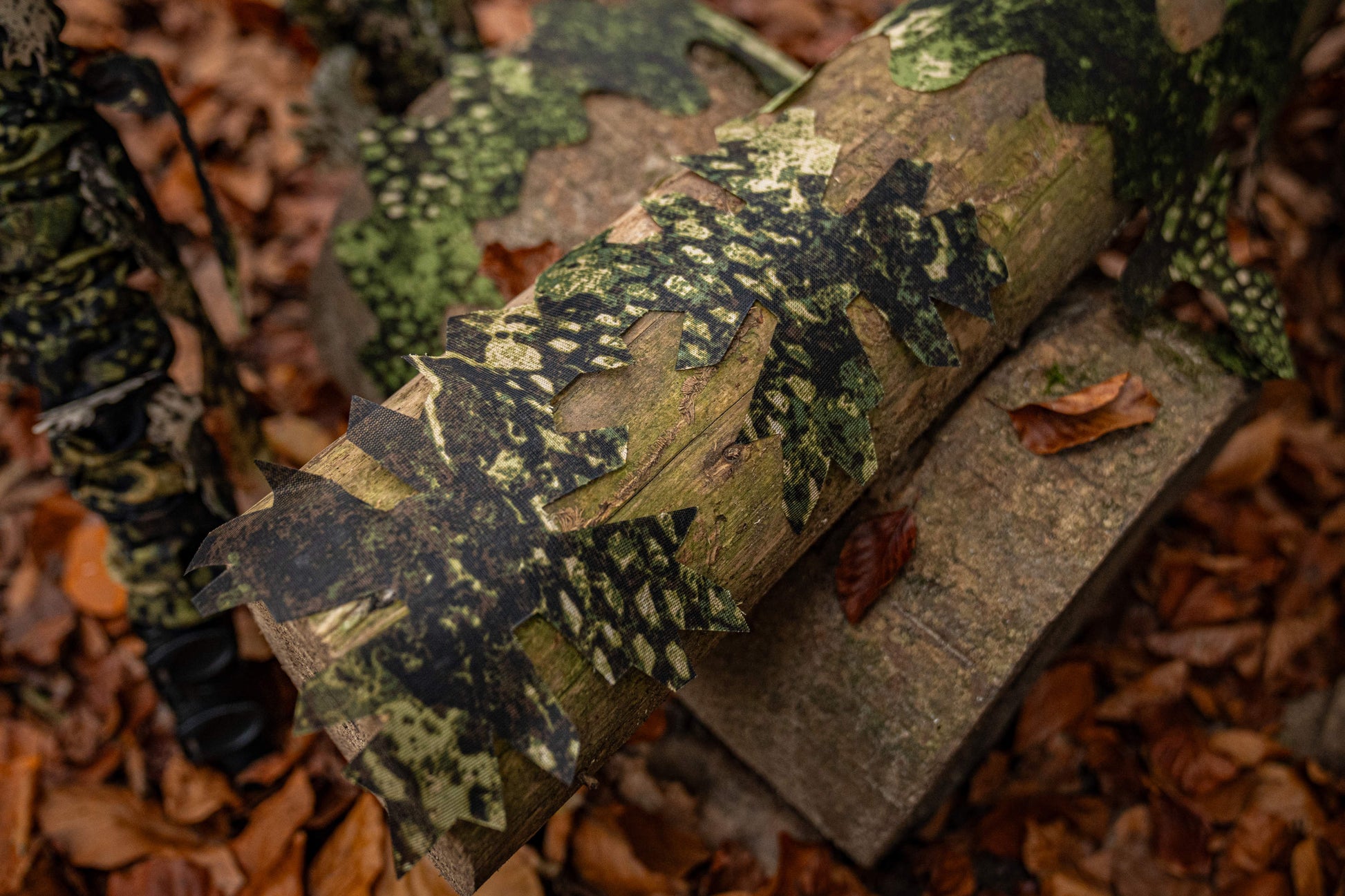 Die Leaves imitieren in Form und Farbstellung die Baumblätter aus der natürlichen Umgebung zur Verbesserung der Tarnwirkung.